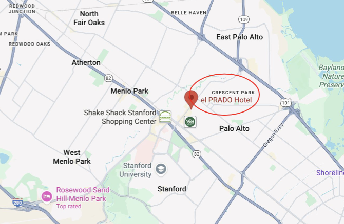 Our event will be taking place at el Prado Hotel, Palo Alto, California.